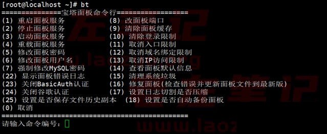 我也有忘记具体从哪个版本开始,宝塔面板有内置这个小工具,我们直接输入 bt 命令调出,可以根据提示进行重启面板、重置数据库密码等工作。
